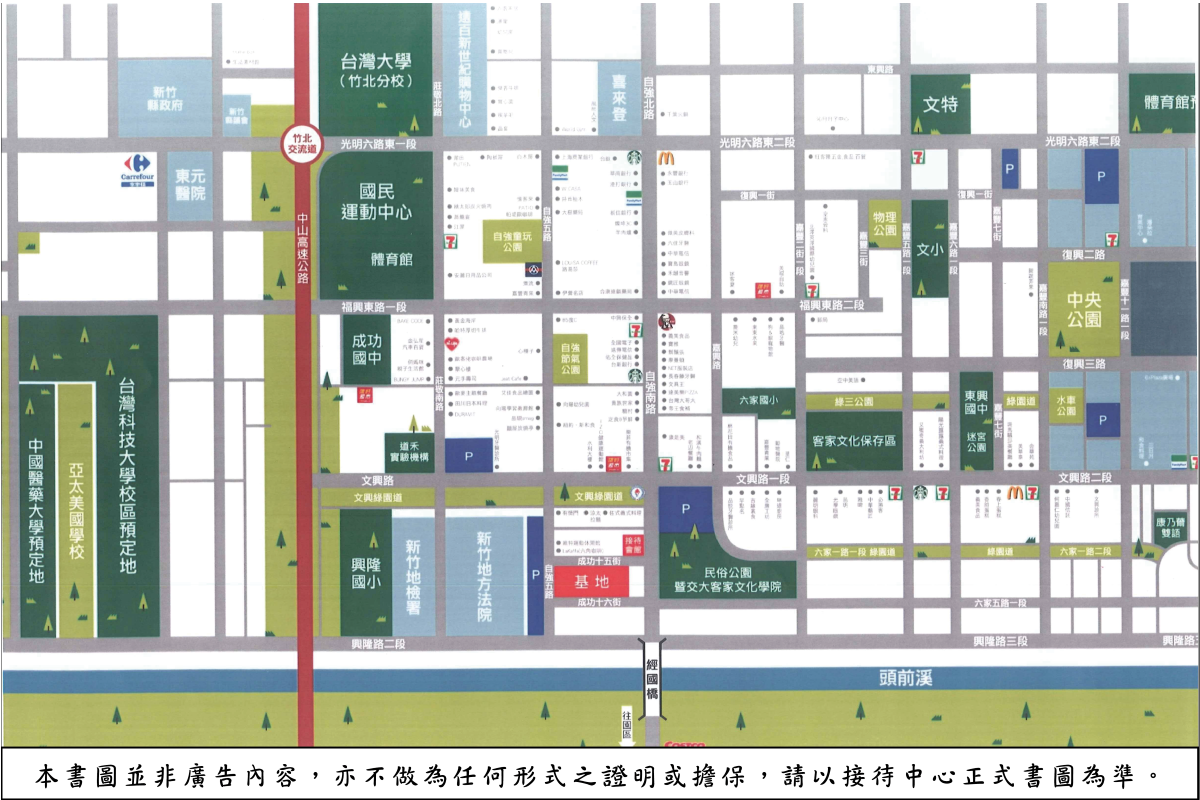 [接待中心]竹北市成功十五街、自強南路口(經國橋下、鄉親養生館對面)