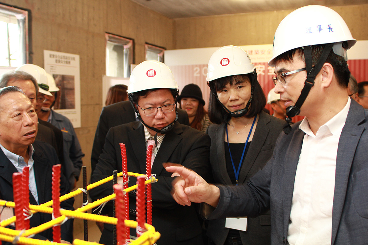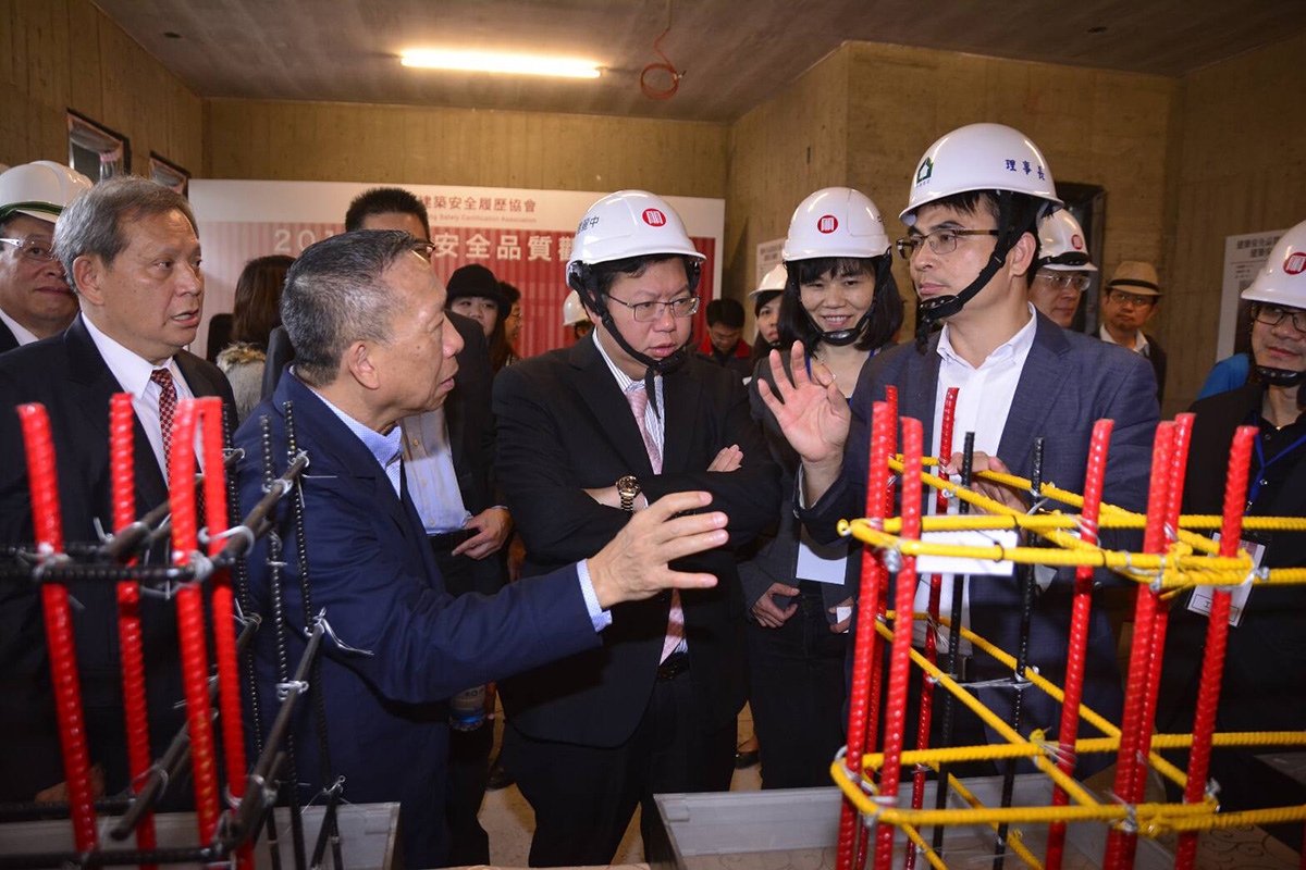 桃園市長鄭文燦致詞時表示,921地震過後,戴理事長有感於施工品質、結構安全對於生命財產保障的重要,持續不斷的運用各種方式宣導「看不見的地方才更重要」,戴理事長對於建築安全品質有著高度的熱情與堅持,我也期許市府團隊在推動各項建設上,能抱持著同樣的熱情與態度,為市民打造優質、安全的居住環境。「建築安全履歷認證」相信能夠為桃園的建築產業帶來新的銷售話題,我也十分樂見桃園能夠率全國之先推出具備結構設計及施工品質等安全性認證的完工建築。