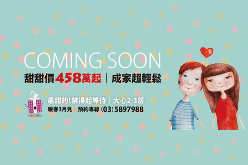 [住週短評]竹北甜心即將登場!基地座落新埔田新重劃區福德街,近高鐵生活圈,規劃10F/B3,29-38坪,2-3房,開價458萬起。聯絡電話:03-5897988