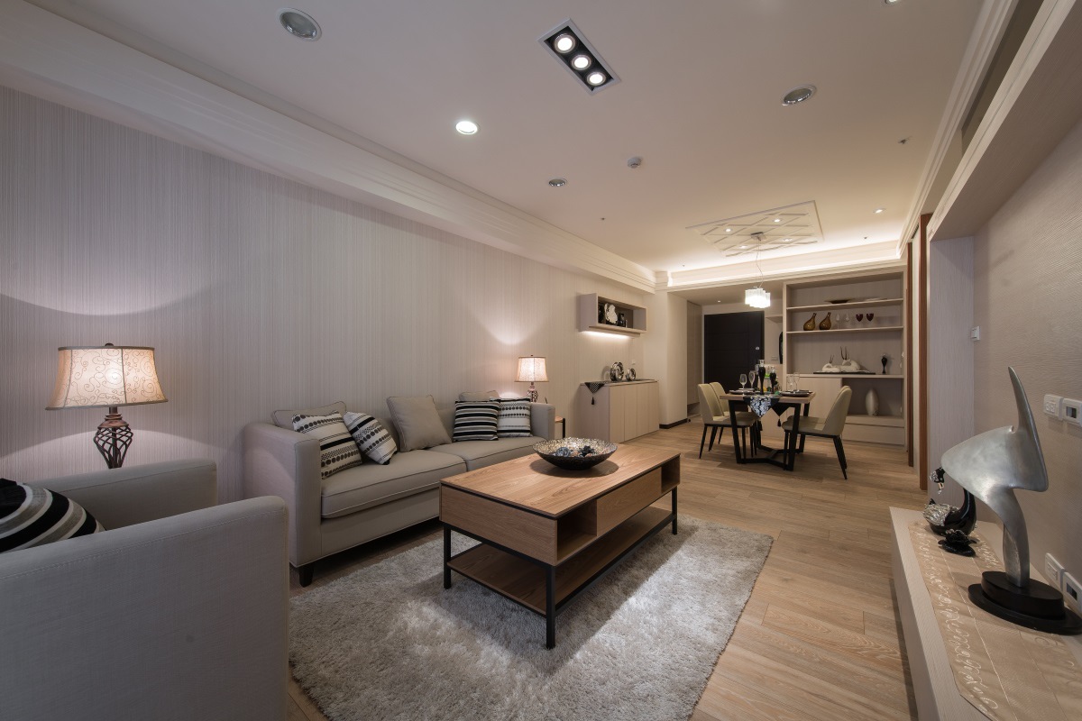 [住週短評]興世代實品屋3房44坪,大落地窗採光通風佳,室內燈飾除了加強明亮感也增加些許溫暖氛圍。臥室強調整潔感,無太多擺飾使得視覺空間有再放大的效果。