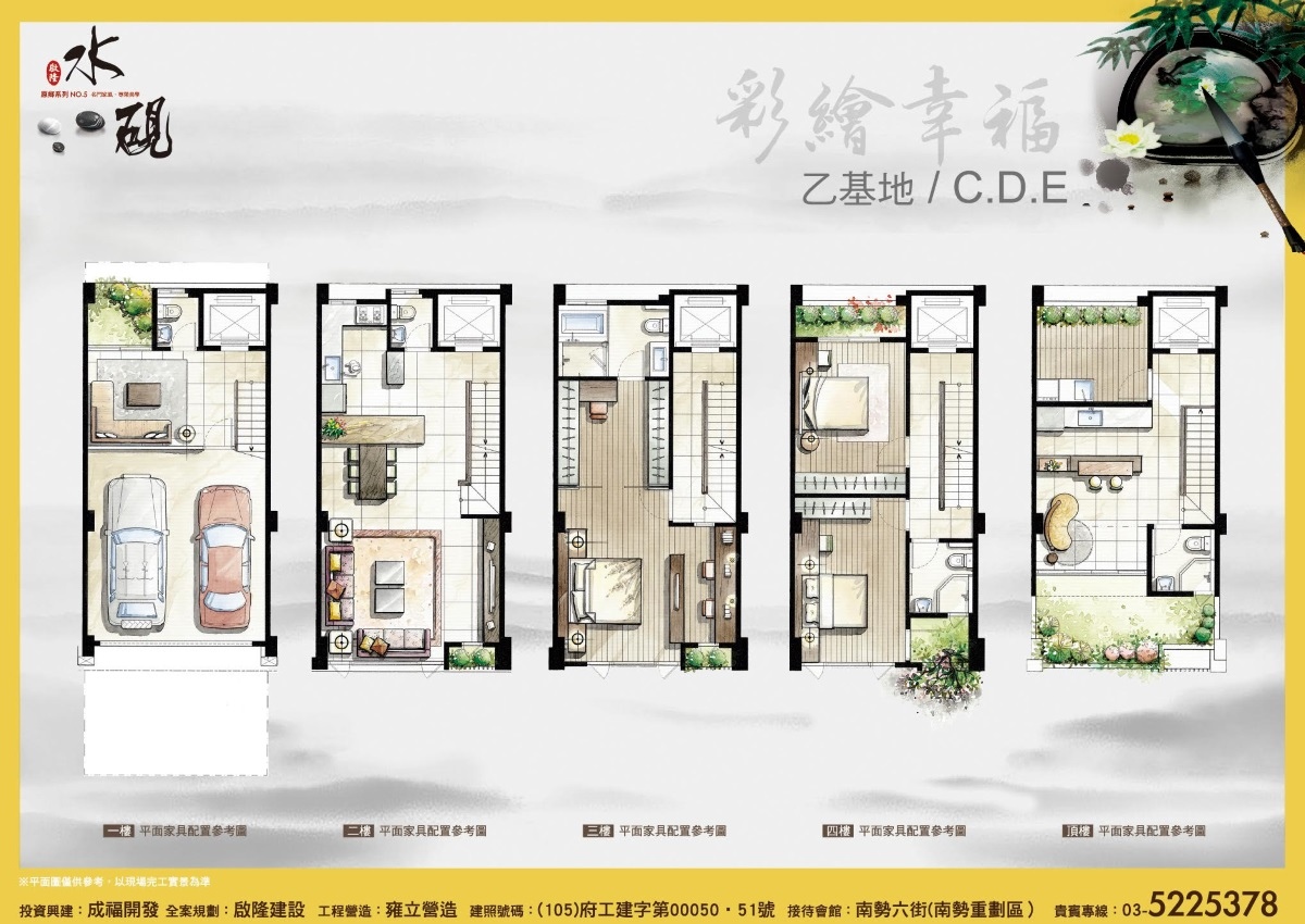 [坪數格局]建73-86坪,4-5房,地22-43坪,面寬5.15/5.3/5.4公尺
