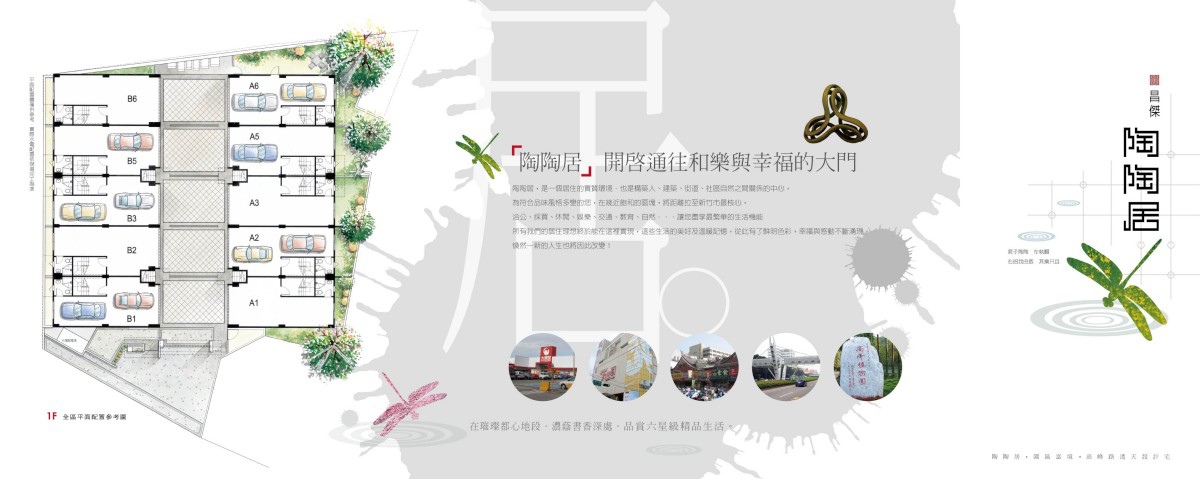 昌傑建設「陶陶居」透天案基地座落新竹市東區高峰路118號。基地面積約300多坪,土地使用分區為住宅用地,總銷約2億。規劃地上4.5層、無開挖地下室,總戶數10戶零店面,1樓停車2-3車位之連棟式透天社區。建約77-80坪,地約33坪,面寬約5.2公尺,深度約10公尺。建議售價每棟約1850-2400萬。自備20%起。接待中心基地上聯絡電話03-5620026