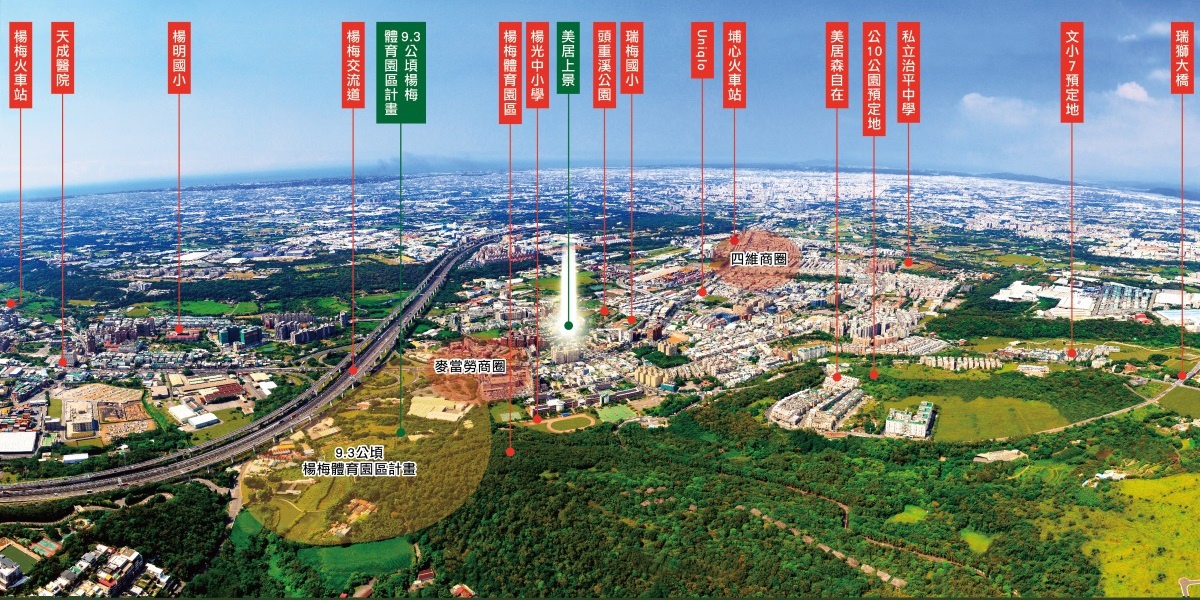 美居建設「美居上景」預售大樓案基地座落楊梅區三民北路與三元街交叉口,近楊梅交流道、五楊高架、頭重溪公園、瑞梅國小,聯外交通便捷,生活機能強。已於2015年10月公開,預計2018年6月30日完工。基地面積約535坪,土地使用分區為商業區,卓玲建築師事務所設計規劃。規劃地上14層、地下2層,總戶數54戶(住53、店1)。住宅建約42-48坪,4房,公設比約30.5%。建議售價每坪約21萬-23萬,車位價每格約90-165萬。自備30%。接待中心:楊梅區中山北路二段107號旁。營業時間:09:00-20:00。聯絡電話:03-4828018