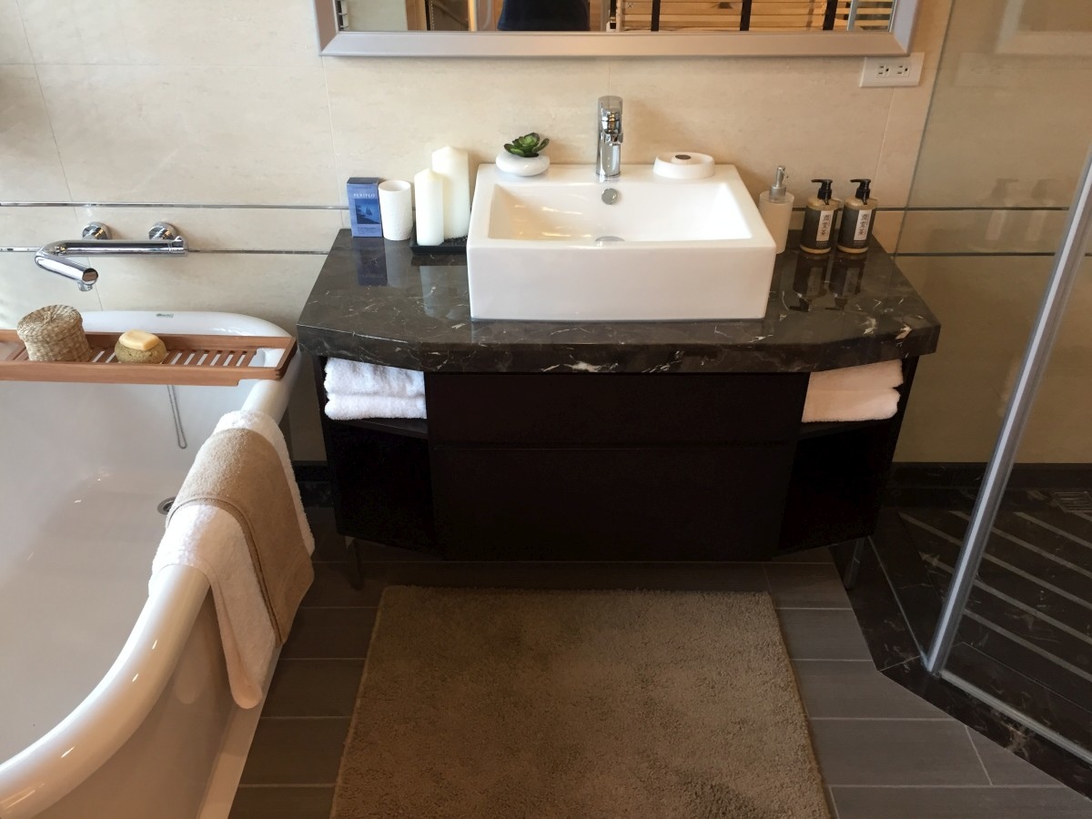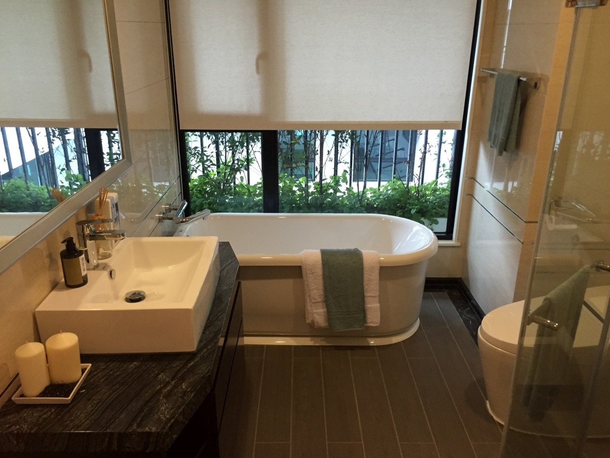「飛鳥觀止」主力為26坪2房,動線流暢無虛坪,衛浴空間扮演亮點,不僅開大窗、採光明亮,而且乾濕分離、標配浴缸,看得出業者試圖傳達飯店宅的休閒特色。