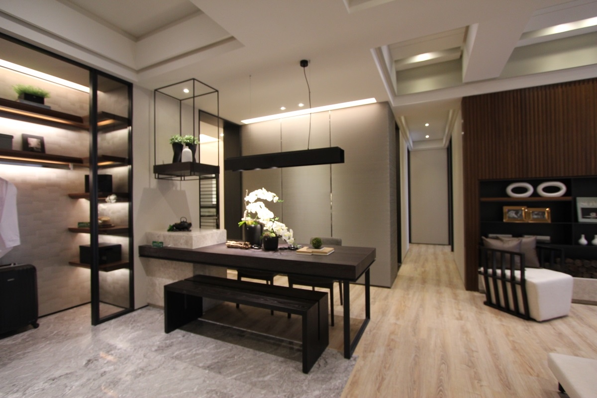 [住週短評]「天空樹」大樓案樣品屋A1棟49.25坪。採大量木質元素使得整體有沉穩內斂風格,鵝黃色燈光有溫暖柔和空間效果。聯絡電話:03-5506788。Design by 立家室內設計