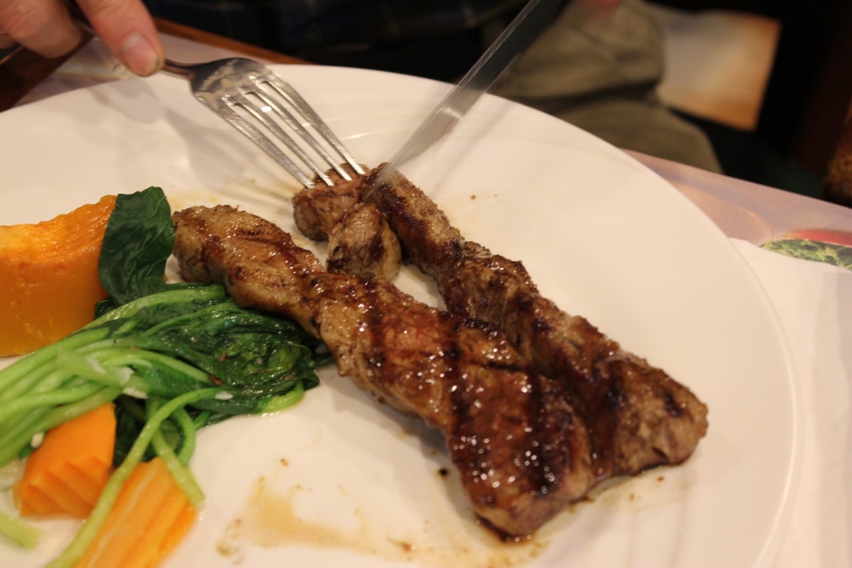 美國自然無骨牛小排,朋友超好笑,看了我點的自然牛(下圖),馬上就後悔點無骨牛小排,覺得分量差太多,不過這道吃來也很不錯呀!因為有均勻的油脂,吃起來香氣十足。
